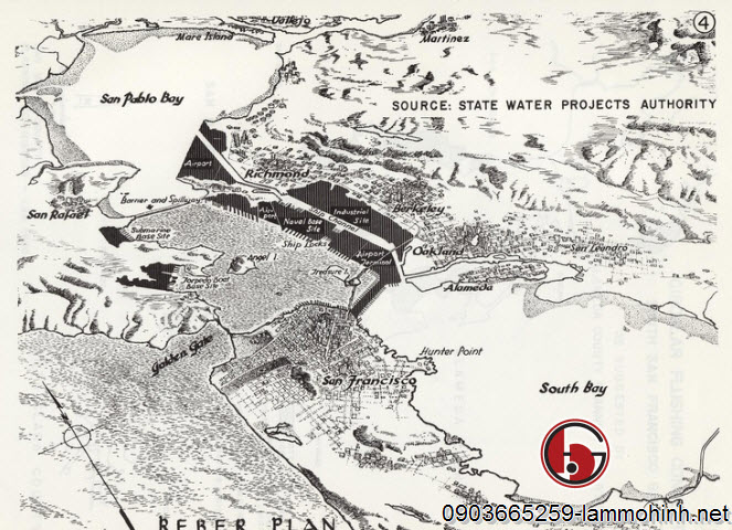 Theo bản kế hoạch của John Reber vào năm 1949 là sẽ xây hai con đập để tạo ra hồ nước ngọt ở giữaSan Pablo Bay và Nam Vịnh San Francisco. Trong khi đó, vùng Đông Vịnh và Richardson Bay Tidelands sẽ được xây dựng một cảng nước sâu, sân bay và căn cứ quân sự. Đề xuất này của Reber đã được Quân đoàn công binh Mỹ cho làm mô hình kiến trúc nghiên cứu tính khả thi của bản kế hoạch. Sau khi kiểm tra kế hoạch của John Reber đã bị hủy bỏ bởi thiếu khả thi.